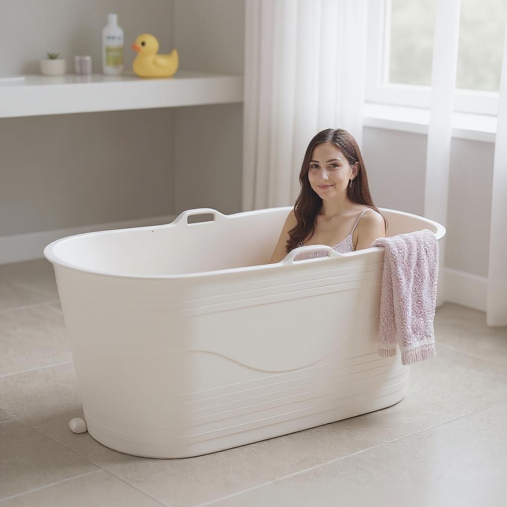 Isbad - XL - 123cm - hvid - Ekstra kraftig plast og forbedret siddekomfort - Tubfamily®