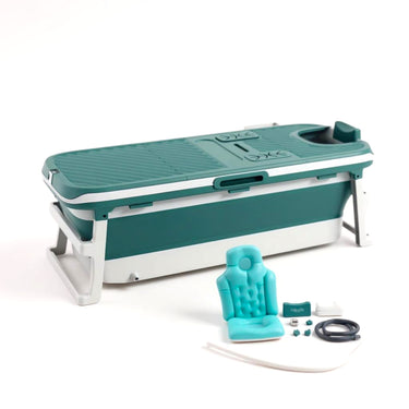 Denne balje kan foldes og er utroligt simpel at stille op. Fold benene ud, skub bunden ned med begge hænder - og vupti, badekarret er klar til brug. Når du er færdig og badekarret skal pakkes væk, er det ligeså let. Karret tømmes med den medfølgende afløbsslange, vendes om, bunden skubbes ned og benene foldes sammen. badekarret er kun 22-25 cm højt når det er sammenfoldet. Den fulde kapacitet er ca. 220 liter. En person på op til 1,83m kan behageligt strække benene i dette badekar. Tåler badesalt, badolier, badebomber og andre lignende genstande. Badet er let at flytte rundt uden vand, både indendørs og udendørs og vejer kun 11kg i foldet tilstand. Badekarret kan klare en person vægt på op til 150kg Fodmassage Denne model er med fodmassage, fodmassagen består af små ruller ved fodenden af badekarret som er meget behageligt at rulle på med fødderne, rullerne er ikke med strøm.